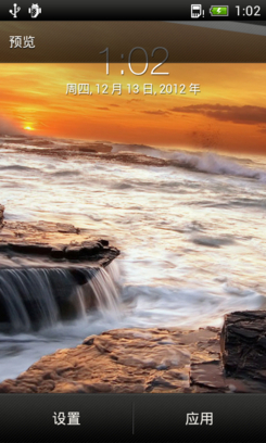 该机运行Android 4.0操作系统,在安卓原生的基础上,搭配Sense 4.0出色的优化设计,用户体验可以说是相当出优秀的。解锁界面可设置多种方式,笔者比较喜欢的是天气模式的解锁界面,按电源键点亮屏幕后,就能看到优美 华丽的天气动画可以说是扑面而来,HTC的天气界面应该说是非常出众的,动画流畅华丽,与系统的结合度相当好,轻松超越了现在市面上的很多天气插件。