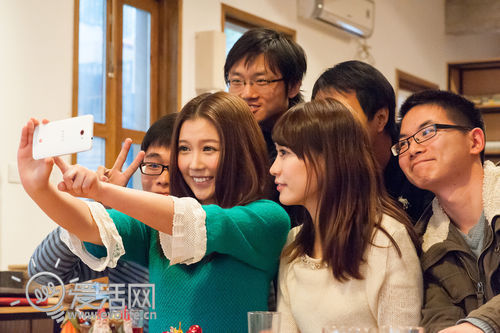 2位美女和4个基,全部摄入前置摄像头中,可惜基不够多,其实能塞进更多的人……