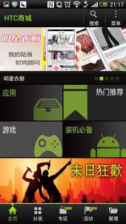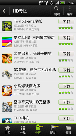 HTC商城、视频中心、游戏中心都开设了HD专区,正好适合Butterfly的高清屏幕。