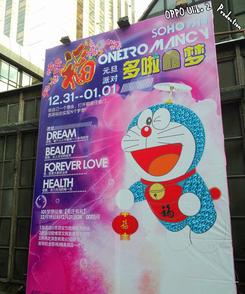 800W像素主摄像头的普通相机最为常用,也最为“傻瓜”,面向的环境条件也最为普遍,以下的哆啦A梦主题布告板就是用普通相机功能拍摄的样张,拍摄时间为早上8点时分,光线不是十分明亮,样张中色彩和细节的表现都较为出色。