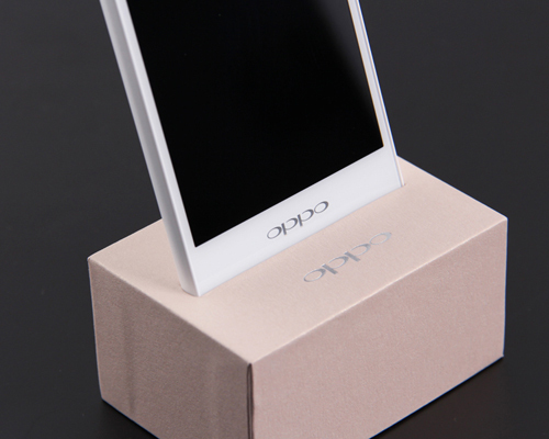 相信网友一定对图片中多次出现的带OPPO LOGO字样的类似展示托的粉色盒子感到期怪,其实它是Ulike 2精美包装的一部分。相对于其他品牌,OPPO Ulike希望在你初次接触Ulike产品精致的包装时即能留下好印象。Ulike 2包装盒采用香水瓶概念设计,辅以蕾丝纹理,颇具梦幻气息,这让小编不禁想起U701的蝴蝶结包装盒拉口设计,一切都是那么的用心。Ulike 2并没有设计物理式感触按键,而是将它们融合到显示屏幕当中,亮屏时会即时显示。
