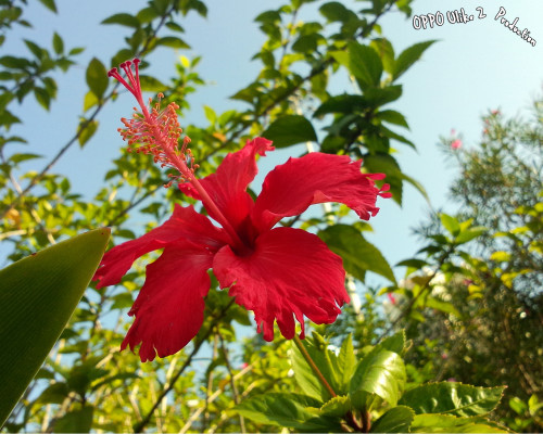 OPPO Ulike 2的800W主摄像头支持F2.4大光圈,适当的微焦距离可以获得出色的景深效果。下图以红色的花朵为主体,花蕊部分细节明显,而背景的绿叶虚化明显,使得花朵更为突出。