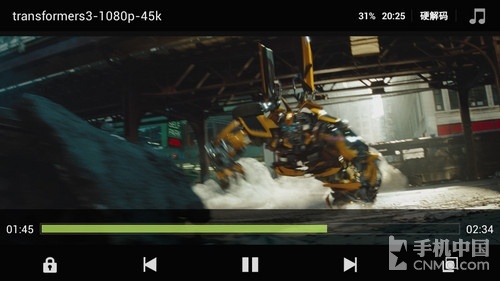 由于分辨率太大,硬件这个视频肯定是不可能了,而即便是利用MX Video Player软解,也并不是所有的四核手机都能将这个视频播完的(带图像。而MT5689设备虽然也是音画不同步、掉帧情况严重,不过却也能将这段视频播 完,这点可不是跑分软件所能测出来的,很大程度上也是体现了MT6589的极限能力。