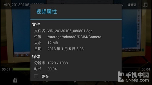 而像笔者手中这个比特率高达45.6MB/s的1080p视频MT6589设备也是能够流拖放。什么?对这个高码率视频没有概念,好吧告诉你,这个两本半的视频容量就达到了843MB。