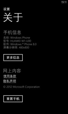 同时,华为W1还拥有21种主题颜色,与其它Windows Phone 8手机相比,新增了一个“梦幻蓝”主题,界面效果清新典雅。另外,这款手机同样支持Windows Phone 8操作系统独有的“儿童园地”功能,启动该“儿童园地”后,可以安心的让家中小孩玩弄自己的手机。