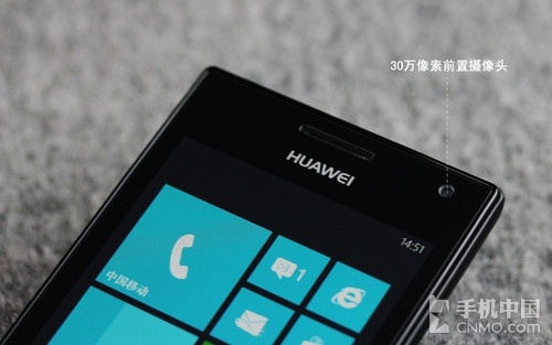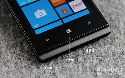 与其它Windows Phone 8手机一样,华为W1的屏幕下方配备了三枚Windows Phone触控按键,从左到右依次为返回键、开始键(又被称作是Windows键)以及搜索键。而在屏幕右上角,该机则配备了一枚30万像素的前置摄像头,可以基本满足用户自拍或视频聊天的需要。
