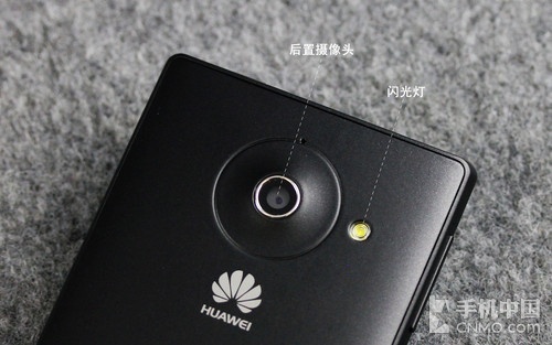 在机身背面顶部,这款手机配备了一枚后置摄像头(带有一枚闪光灯),摄像头微微凸起,整体设计十分个性。至于该机具体的成像效果,笔者将在后文中为大家详细介绍。