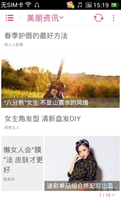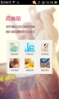 包含了搭配攻略、护肤美妆、美体秘笈、发型速递、健康宝典、星座物语六大类资讯,从穿衣、装扮、饮食、塑身、保养、生活、女性知识、心理测试再到女性职场,信息很全面。