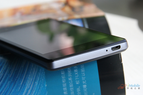 OPPO R813T的屏幕外框为黑色,与藏蓝色背部衔接的部分,采用一圈灰色金属质感喷漆的边框装饰,略带弧度的流线设计让侧面看起来更有灵气;按键都安排在机身两侧,并采用具有点缀性的亮银色。