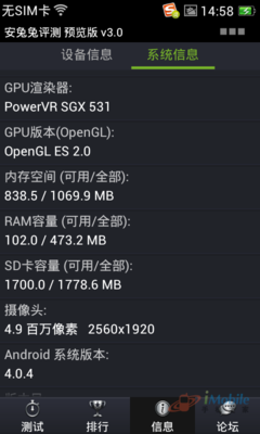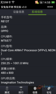 安兔兔对系统的综合测试得分为6826,尽管在分数上与那些高端机相差悬殊,但是从实际使用感受来说,R813T出色的优化使得系统流畅度很高,交互操作的反应也很迅速,屏幕测试显示OPPO R813T的屏幕支持5点触控。