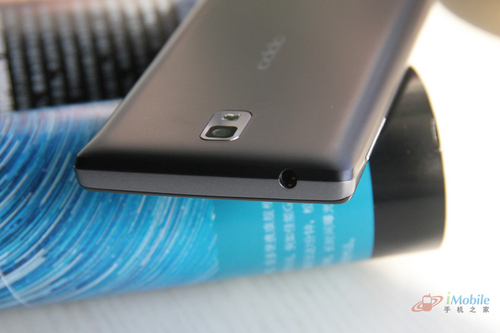 我们拿到的是蓝色版的R813T,后盖是采用藏蓝色的喷漆,很雅气;磨砂表面以及略带弧度的设计,上手舒适。背部设计简洁,上方配有一颗500万像素的摄像头和闪光灯。