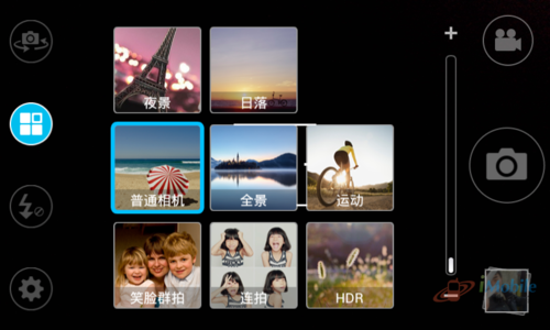 R813T的拍照设置比较简单,功能比较偏重实用,所以我们没有看到太多复杂的细节设置,但配置了夜景、全景、HDR、笑脸群拍等流行元素的多种拍照模式。