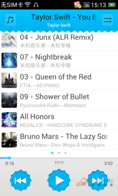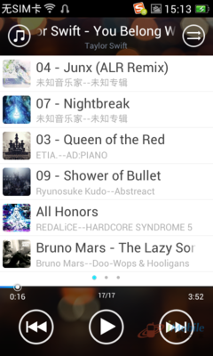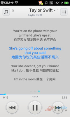 播放器界面风格未变,与我们以前介绍过的Real系列机型相同,简约的风格和配色。OPPO R813T也同样支持联网自动获取歌词,歌词带有中英双语显示。
