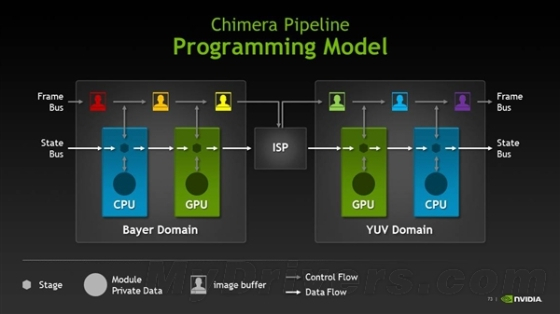 Chimera的编程部分我们就不多说了,深入的细节文档也尚未公布,你只要知道除了CPU,现在还可以用GPU来实现很多功能就可以了。值得玩味 的是,NVIDIA一直在努力推行CUDA,不知道会不会将它引入到Tegra上呢(那得革新GPU架构)?又或者甚至支持OpenCL?
