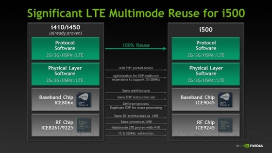 比如说,i500的多模调制解调软件就和i4xx系列完全一样,只是把改进了DXP使其支持15MHz、20MHz通道的LTE。