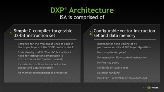 D运行在DXP0、DXP2,是私有语言写的矢量指令集,运行于物理层上,正是它配合特定的库给了Icera基带灵活配置的能力。