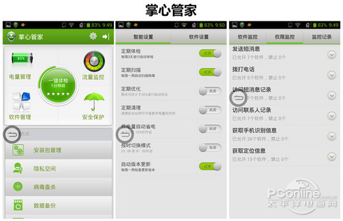 中兴Grand Memo系统内置的掌心管家表现不错,支持流量监控、权限监控、程序管理、系统垃圾清理等多项功能。