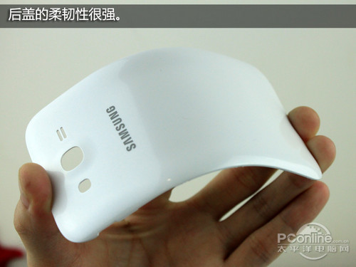 三星I9082也采用了柔韧性很强的后盖,材质仍为塑料,耐用性有保证。