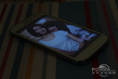 我们再看看可视角度,三星I9082在低视角的情况下没有出现普通TFT屏亮度降低的情况,也没有普通TFT屏泛白的缺点,屏幕显示效果也较为通透。三星方面虽然没有对这块屏幕做具体解释,但我们认为这块屏幕素质还是颇为不错的。