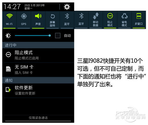 其实三星I9082系统方面和三星旗舰机型I9300是没有多少差别的,三星I9082也继承了三星I9300的人性化功能,可以让手机更加人性化。如果还有对I9300的系统部分还不是很了解的朋友可以跳转我们之前的评测文章阅读,这里就不再赘述了。