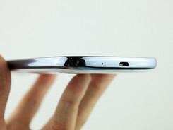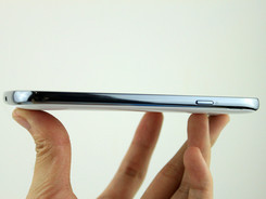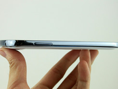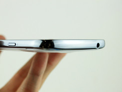 机器侧面采用了反光度很高的乌面涂层,这点也和之前的三星手机类似,机身按键方面布局也很常规。而按键手感上还是挺不错的,键程适中手感清脆,给机器有所加分。