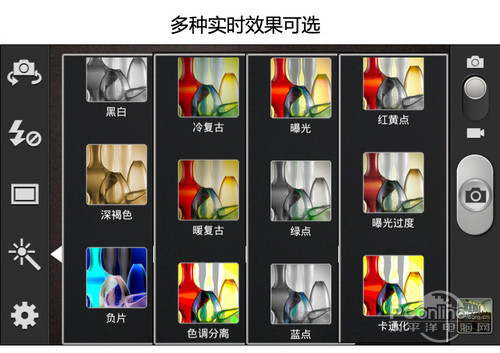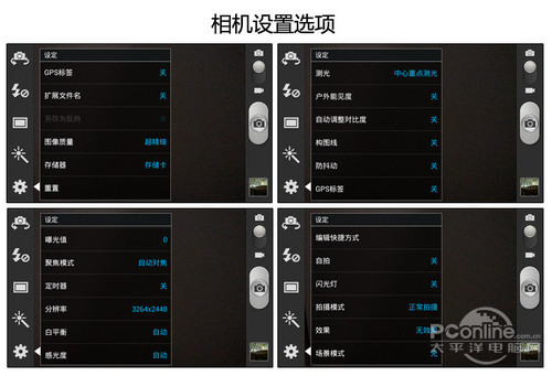 三星I9082采用的是一颗800万像素的摄像头,像素也维持在了目前的主流水平。相机程序设置选项很丰富,可玩性很强。虽然与诺基亚808采用的CPU规格接近,但是显然不会配上一个4200万像素摄像头的。