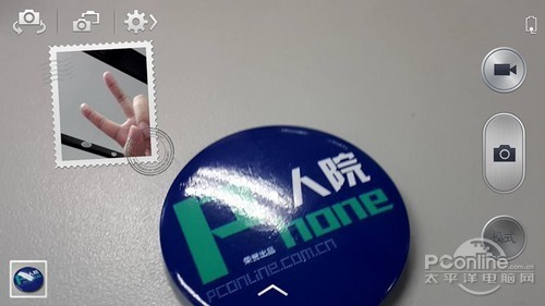 三星在GALAXY S4发布会中重点介绍的双摄像头同时拍照的功能,该功能使得拍照者也可以同时进入照片当中,小图的相框是可以更换的,系统提供了多种的相框可供选择。