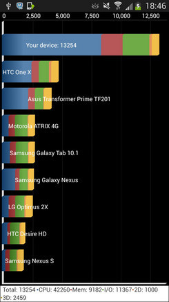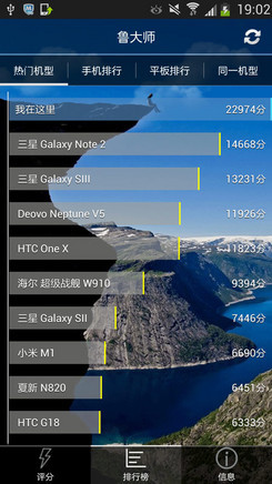 硬件方面,此次评测的三星GALAXY S4采用了三星最新的Exymos 5 Octa处理器。该处理器采用28nm工艺制程,基于ARM的ARM big.LITTLE/Cortex A15架构(也就是所谓的大小核架构),号称是一种低功耗,高性能的移动处理器架构。三星这块处理器的特色是由两个四核处理器组成,分别为1.8GHz的 A15架构处理器和1.2GHz的A7构架处理器。