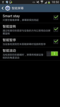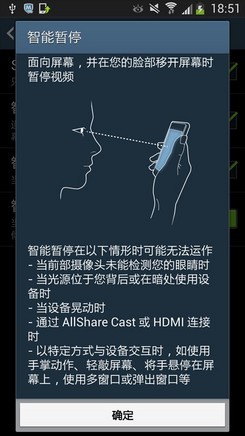 总体来看三星GALAXY S4在系统界面和布局方面依旧维持过去的风格,同时针对部分功能加以优化和完善。此次三星GALAXY S4加入的只能暂停和智能滚动是该机系统的亮点所在。