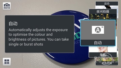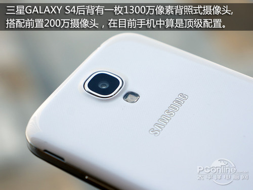 三星GALAXY S4采用了1300万像素背照式摄像头,属于目前安卓手机的顶级水平。同时三星还加入了双镜头拍摄、连拍、群组拍照等丰富的拍照功能。