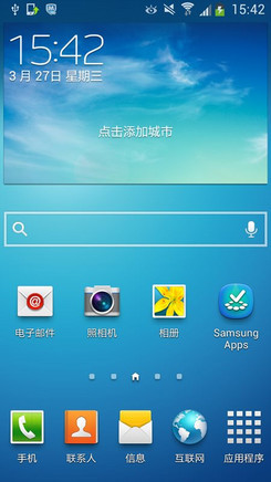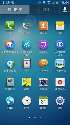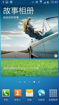 主界面并未有大的变化,依旧是桌面+程序列表的两级模式,桌面工具加入了特殊功能的展示区,比如故事相册、三星Hub等。