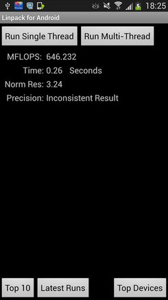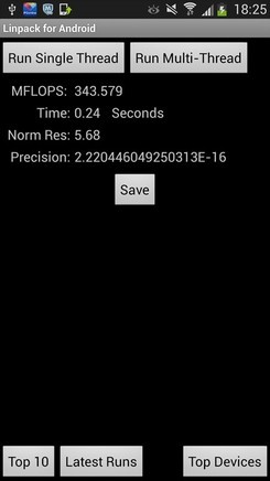 Linpack单线程343.6MFLOPS、多线程646.2MFLOPS