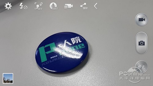 GALAXY S4的默认拍照相比过去有较大变化,拍照键和录像键集成进入同一个界面,拍照模式选择按钮在拍照键下方。相机设置和状态按钮则以透明的形式列在界面左上方,左下方为快速进入相册的按钮。