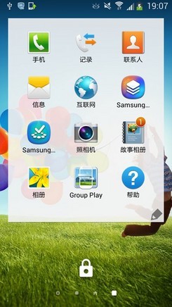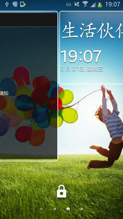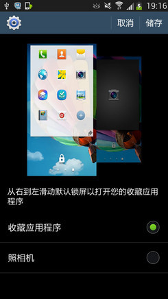 当然,三星在此次锁屏界面中也加入了Android 4.2的锁屏特性,在锁屏界面从左右边沿向中间滑动可以快速开启程序或相机。