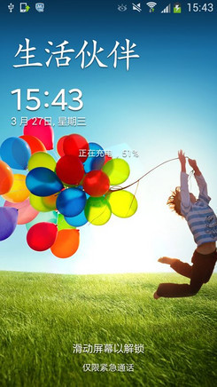 三星GALAXY S4搭载了最新的Android 4.2.2操作系统,内置TouchWiz Nature UI用户界面。锁屏相比GALAXY S3进行了一定改进,在屏幕任意地方滑动会有类似“炫光”的效果,随之解锁进入主界面。