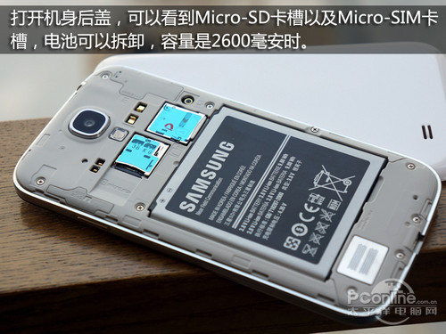打开后盖,和三星一直以来风格很像,各有一个Micro-SIM卡槽和Micro-SD卡槽。我们目前拿到的是单SIM卡槽版本,在后续的运营商定制机中,相信我们能看到双卡的版本出现。