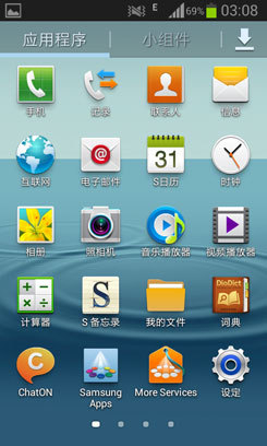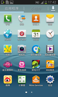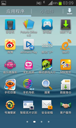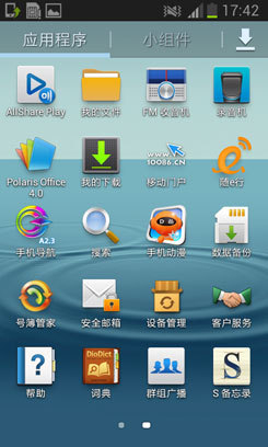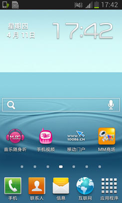 作为非定制机型的I9128V上面我们可以看到它预装了一些中国移动的特色应用,相信这与其还处于工程机的阶段有关。