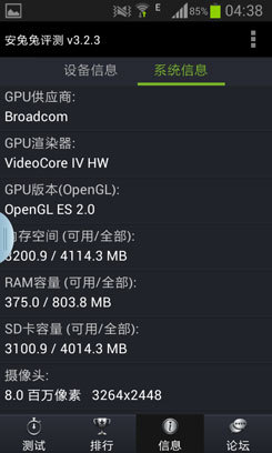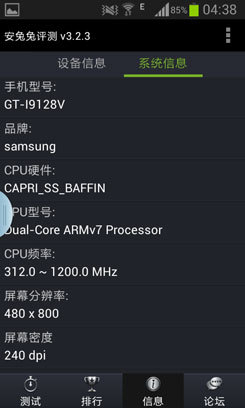 I9128/I9128V配备了1.2GHz的双核处理器,型号为博通BCM28155,该处理器的图形处理性能较一般双核处理器出色。在RAM方面,容量为1GB,而ROM为8GB。PS:测试机型为I9128V。