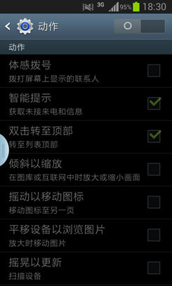 两机均搭载了安卓4.1.2系统,在系统界面上面,它们也是大同小异,传承了三星安卓手机独特的风格,也保留了一些旗舰机型中的人性化功能,如Smart stay、体感拨号和双击转至顶部等功能。