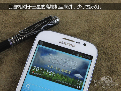 像很多智能手机一样,I9128/I9128V均配备光线感应器和距离感应器,但缺少了一些中高端机型中常见的提示小灯,相信这是三星公司为了让其与高端机型拉开一定差距的原因。