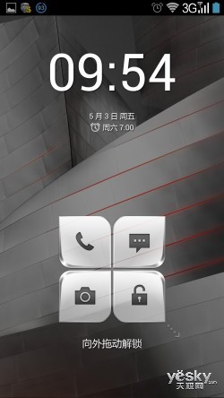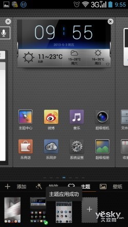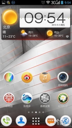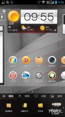 而进入到屏幕主UI界面后,我们也看到联想通过优化后加入了自己独具特点的元素,尤其是带有中国风的圆润图标,不仅画面更显精美,操作体验也很 不错。此外,为了满足消费者个性化的需求,联想K900还加入了很多特色主题,我们可以通过长按屏幕调出、点击Meun键或者在系统设置等三种方式进行修 改。