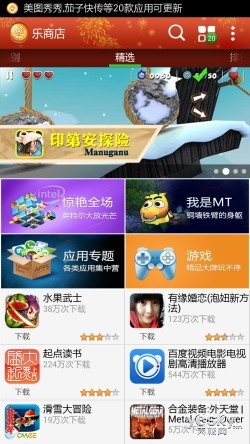如今人们使用智能手机,多种多样丰富的APP应用自然是最吸引人的特色,联想K900还内置了乐商店,不仅能够提供海量的APP供用户选择下载,还有相应的应用升级服务。而且在Android市场APP监管不力的情况下,乐商店能够有效的保证所下载应用的安全情况。