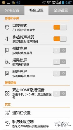 在如今Android智能手机同质化的背景下,很多终端厂商开始在人性化体验方面下功夫。联想同样将其优秀的人机交互体验带入到这款最新的旗舰 级产品上。比如在系统设置中的特色设置选项,我们可以对体感和手势、智能语音等进行设置,其中口袋模式、拿起铃声减弱、摇晃锁屏、敲击亮屏等都十分实用。 而且在我们的实际操作中,系统识别表现很好,有效的减少了操作过程。