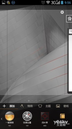 另外,虽然在待机待机桌面中并没有看到经常出现在联想系列机型中的四叶草UI界面,但我们同样可以通过内置小部件调出。通过该界面我们还可以进行场景设置、特效设置、壁纸等一系列方式添加个性化十足的方案。