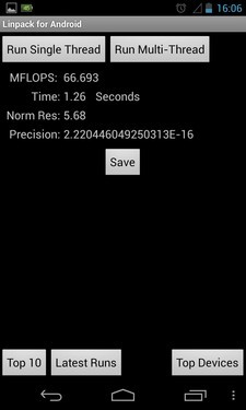 之前进行过的综合测试中,Nexus 4在浮点运算方面有着较大差距。通过上面单独的浮点运算测试也再次印证了这一点,GALAXY S4的分数达到了Nexus 4的三倍之多。