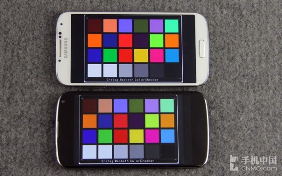 众所周知,三星的Super AMOLED屏幕一直以色彩艳丽著称,而这也更容易吸引用户的眼球,即使一张稍显平淡的照片在Super AMOLED屏幕上也可以有一种“浓墨重彩”的感觉。从上面24原色色板的对比可以看出,GALAXY S4在显示红色、橘黄色、黄色、蓝色、深绿色等颜色时,视觉效果明显要优于Nexus 4。