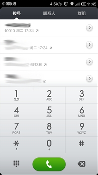 不同UI,相比之下锤子ROM的拨号界面是最为简洁的,没有通话记录以及电话薄选项。