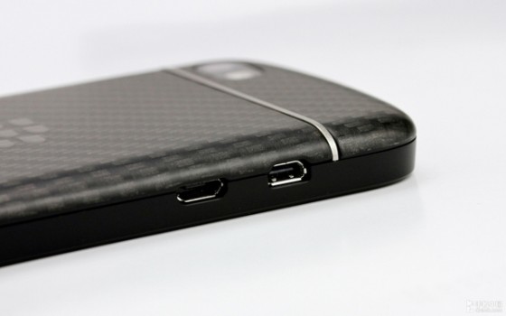 其实,之前9系列的高端机做工都还不错,尤其是9900,可谓达到了黑莓设计和制造工艺的顶峰。此次,在Q10身上我们依旧看到了这种优良传统,正面的面板和边框贴合紧密,并未出现明显的缝隙,拿在手中感觉比较牢靠。