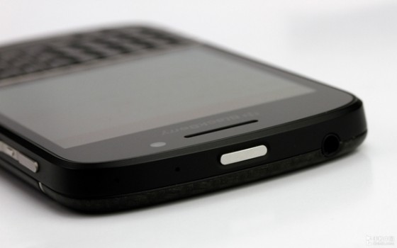该机音量键位于机身右侧中上部,而电源键则是在顶端中间位置。这种布局如果放在一款巨屏手机上,必然会让操作变得十 分痛苦,但是在Q10身上,并不会发生这种情况,因为它的机身相对小巧,即使按键在顶部也可以轻松按到。这三颗实体按键均采用了金属银配色,与键盘中的银 边交相呼应,视觉效果很好。手感方面,它们明显要比字母键盘硬一些,段落感更加清晰,反馈同样明确。