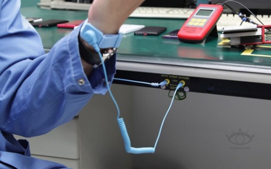 另外需要格外注意的是,整个维修处理全程都必须处于无静电状态,这样才能避免灰尘的沾染,以确保防水状态正常且无入尘。为此,操作人员会穿上防静电服并在手腕上带上导电手环。